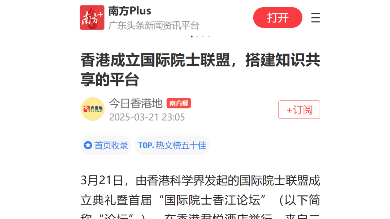 香港成立國際院士聯盟,搭建知識共享的平台