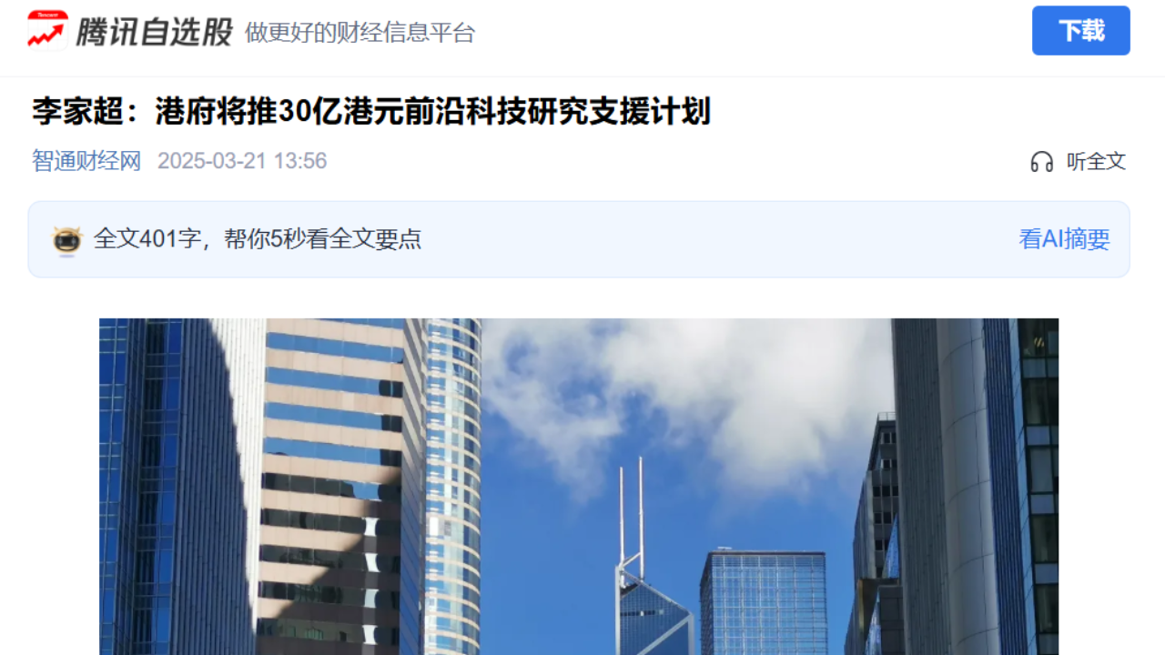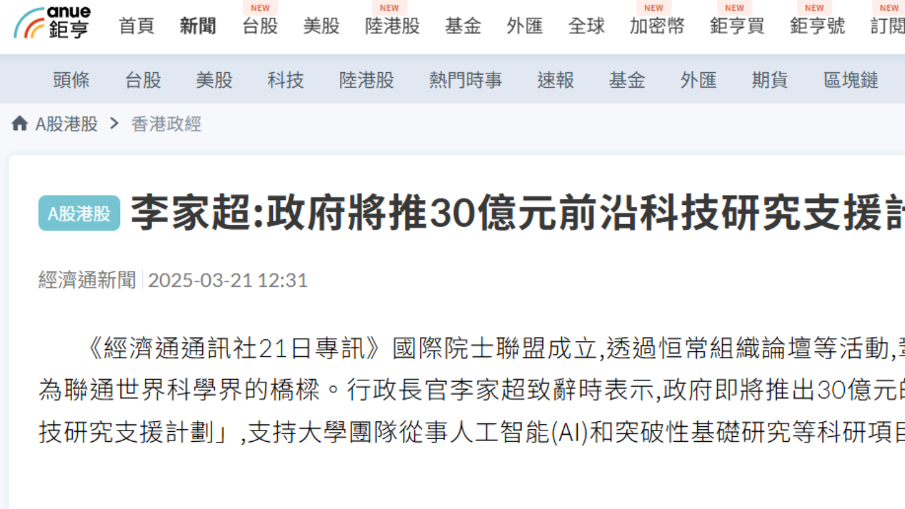 30億推前沿科技研究資助 李家超稱香港憑硬件及軟實力創造機遇