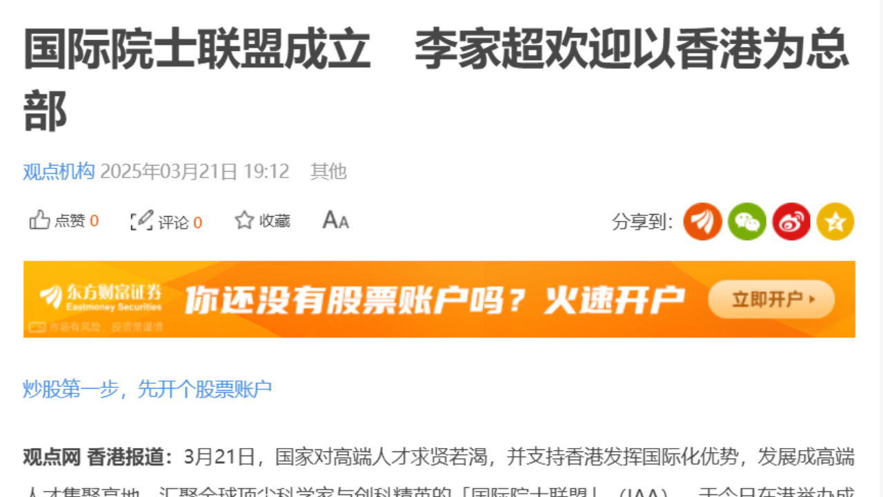 點直播|「國際院士聯盟」成立典禮|3月21日